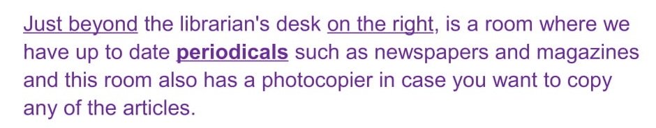 Note how much positional/directional language is used in this one sentence. This is why it is so important to develop your knowledge of this type of vocabulary.